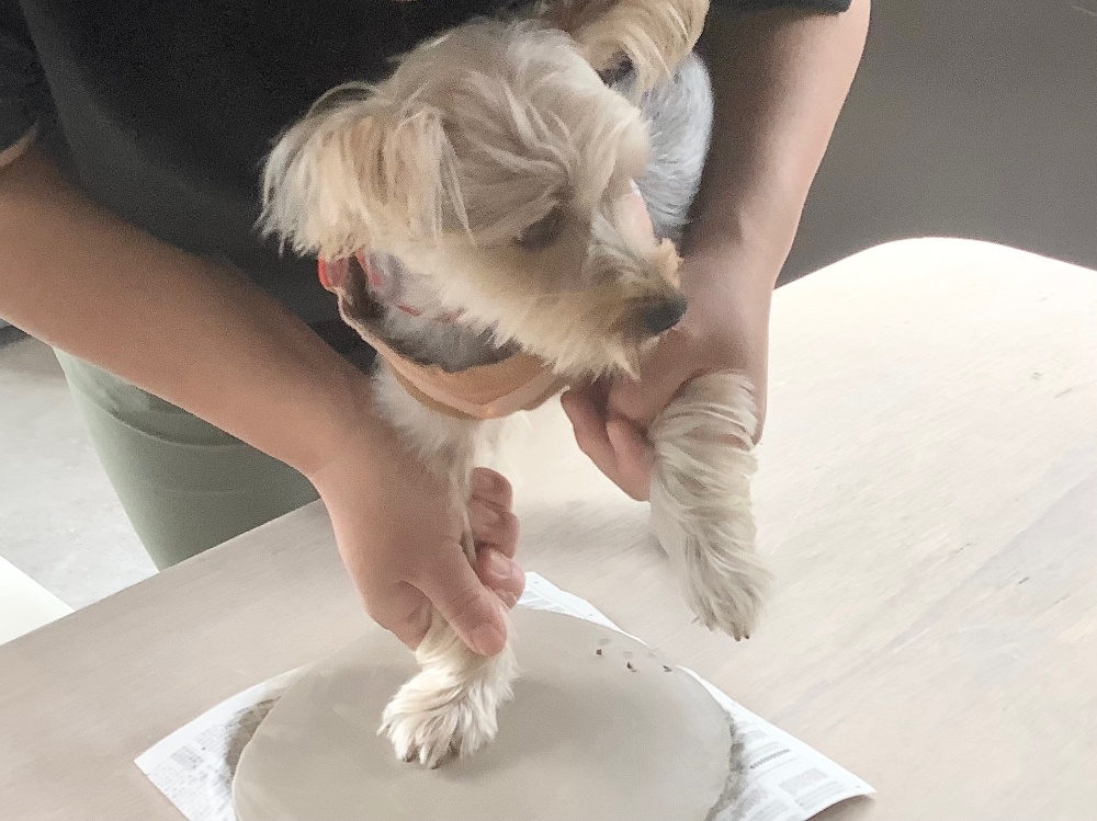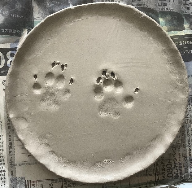 ワンちゃんの足形のお皿作れます